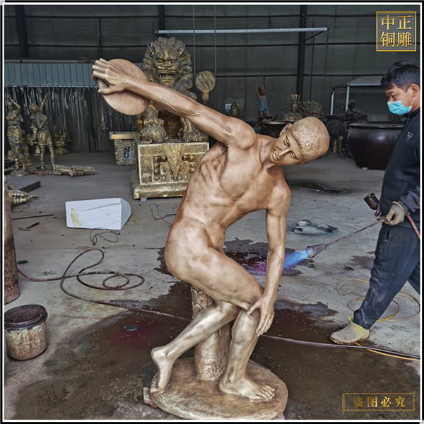 中正銅雕-純銅校園鐵餅人物雕塑、純銅校園鐵餅人物雕塑價格、純銅校園鐵餅人物雕塑廠家,我公司集科研、開發設計、普通鑄造、一次性整體澆鑄、精密鑄造于一體。本公司技術力量雄厚,設備,不但重視中國青銅器原有的藝術風格,還繼承了文物原有的藝術品味,在繼承和發揚古老文化的同時,更深一步為新老客戶定身量制各種銅制、鐵制工藝品等產品,曾多次受到寺廟長老和美術學院教授的好評。