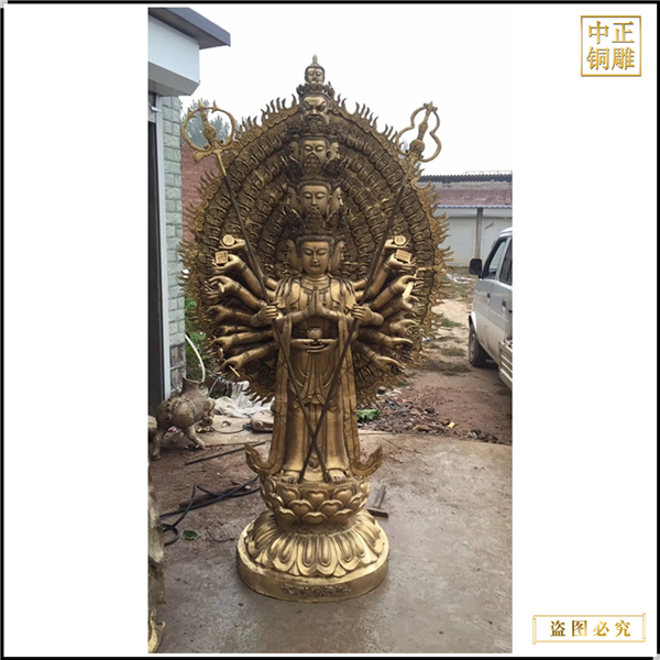 中正銅雕-貼金千手觀音菩薩銅像鑄造、貼金千手觀音菩薩銅像鑄造價格、貼金千手觀音菩薩銅像鑄造廠家,我公司實行現代化企業管理,成功導入TPS生產管理系統,形成集塑制泥塑模型、泥稿后翻制模具、翻制石膏模型、工藝師加工制作、營銷為一體化作業的生產線,加上先進的銅雕加工設備,優秀的美術設計師,雕刻經驗豐富的制作人員。
