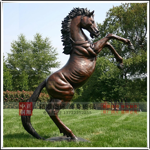 銅馬是雕刻家們很喜歡的,在他們手下的馬體態健碩,或者昂首挺胸,雄赳赳氣昂昂,或者低頭嘶鳴,又或者做向前奔馳狀,帶給人們一種震撼力。馬雕塑在公園、游樂場、廣場等公共場所很常見,它象征著生意興隆、財源廣進。另外現在一些小型銅馬也被用作家居裝飾品,不僅美觀,而且增添了藝術氣息。