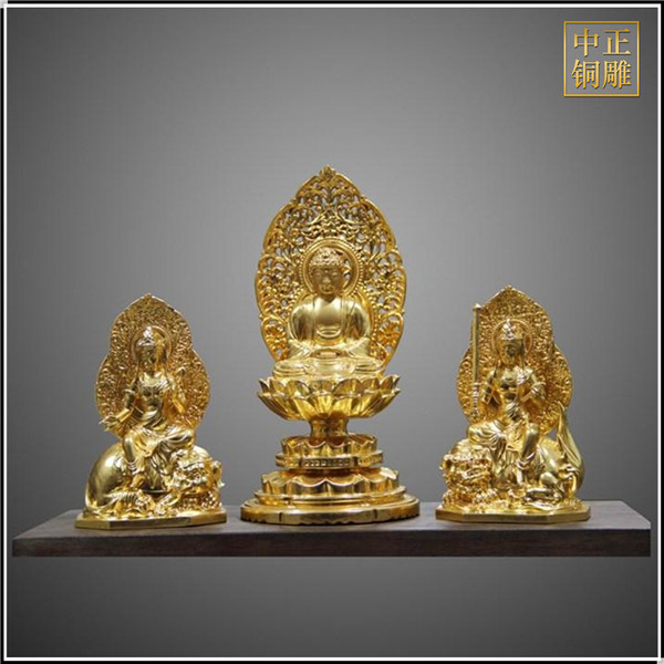 三寶佛的排列方式為由右至左分別為:藥師佛在世人苦難中,伸出援手來解除我們的苦惱;再由釋迦牟尼佛所傳佛典來修持佛法,經過教誨后,釋迦牟尼佛會將我們遣送;最后再由阿彌陀佛來接引到西方極樂世界。中正銅雕-三寶佛銅佛像擺件、三寶佛銅佛像擺件價格、三寶佛銅佛像擺件廠家,我廠是一家以設計、制作、安裝為一體的發展型企業。公司坐落在中國銅雕之鄉---河北唐縣,成立于1984年。公司自成立以來,以優質的雕塑工藝,優異的性價比,一體化的銷售網絡,高效、完善的售后服務,飛速發展。成為了擁有設計、銷售、生產、安裝、維護為一體的銅雕塑制作商。