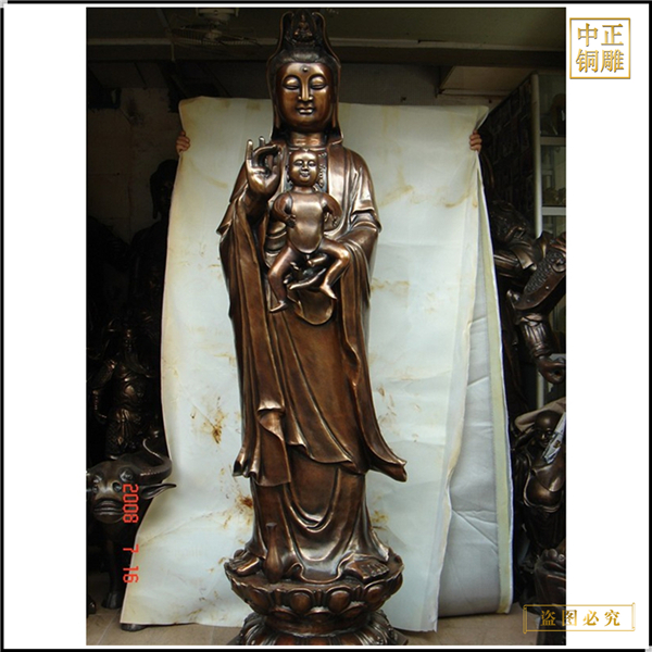 中正銅雕-定制送子觀音像擺件、定制送子觀音像擺件價格、定制送子觀音像擺件廠家,我公司集科研、開發設計、普通鑄造、一次性整體澆鑄、精密鑄造于一體。本公司技術力量雄厚,設備,不但重視中國青銅器原有的藝術風格,還繼承了文物原有的藝術品味,在繼承和發揚古老文化的同時,更深一步為新老客戶定身量制各種銅制、鐵制工藝品等產品,曾多次受到寺廟長老和美術學院教授的好評。