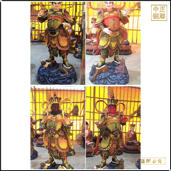 中正銅雕-大型鑄銅四大天王銅佛像、大型鑄銅四大天王銅佛像價格、大型鑄銅四大天王銅佛像廠家,我公司實行現代化企業管理,成功導入TPS生產管理系統,形成集塑制泥塑模型、泥稿后翻制模具、翻制石膏模型、工藝師加工制作、營銷為一體化作業的生產線,加上先進的銅雕加工設備,優秀的美術設計師,雕刻經驗豐富的制作人員, 造型精美,精雕細琢,深受客戶的好評。
