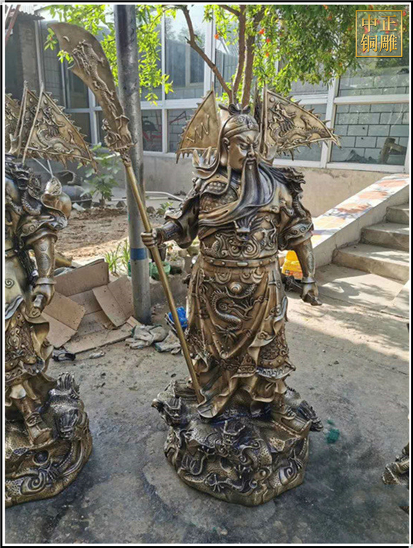 睜眼關公要不得:因為如果關公的眼睛總是睜著的話,會顯得煞氣重,如果是體弱的女性是根本承受不住的,這樣不僅不能帶來好運,更甚還會給佩戴者帶來不幸。民間還有一個說法就是,關公睜眼必見血,所以關公的掛件,最好是選擇閉眼或者是瞇著眼睛的。切記在洗澡、游泳、就寢時盡量不要佩戴關公,一來是避免不小心損傷,二來是會玷污了。中正銅雕-純銅關公像鑄造、純銅關公像鑄造價格、純銅關公像鑄造廠家,我廠是一家以設計、制作、安裝為一體的發展型企業。公司坐落在中國銅雕之鄉---河北唐縣,成立于1984年。公司自成立以來,以優質的雕塑工藝,優異的性價比,一體化的銷售網絡,高效、完善的售后服務,飛速發展。成為了擁有設計、銷售、生產、安裝、維護為一體的銅雕塑制作商。